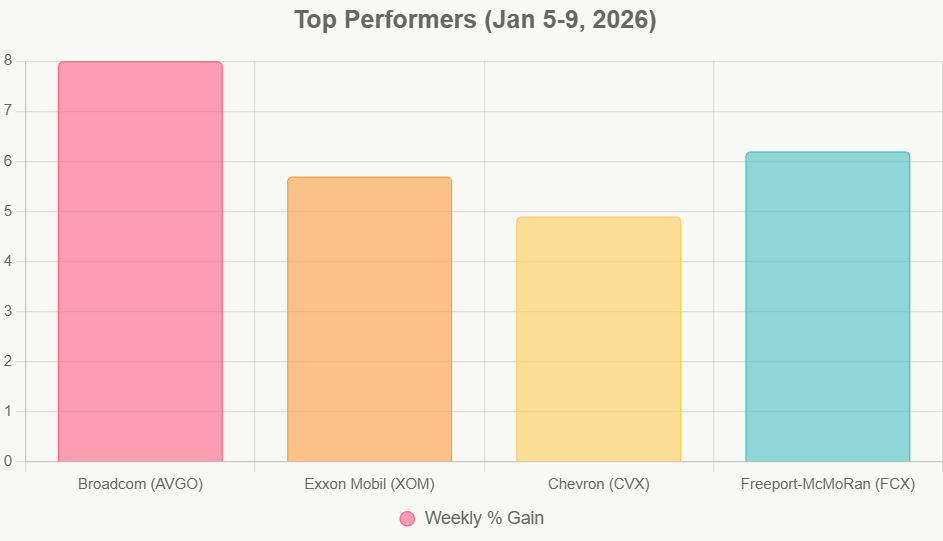 Energy stocks also shone brightly, influenced by geopolitical ripples from Venezuela's political shifts. Exxon Mobil (XOM) climbed 5.7%, benefiting from oil price stability around $75 per barrel, while Chevron (CVX) added 4.9%—trends our Nexus Wealth Management team monitors closely for clients integrating commodities into personal financial planning. Small-cap standouts like those in the materials sector, such as Freeport-McMoRan (FCX) up 6.2%, further illustrated the rally's breadth, providing diversification benefits that align with our Missoula financial advisory team's emphasis on balanced strategies.
